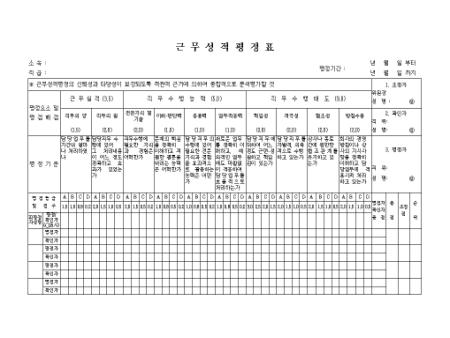 근무실적,직무수행능력,직무수행태도를 평가하는 비교적 자세한 근무성적평정표입니다.