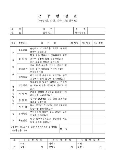 임원급 근무평정표로 근무태도,업무수행능력,실적을 평가합니다.