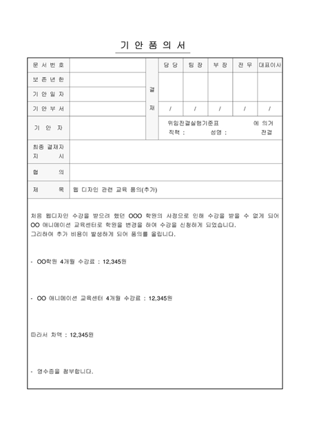 웹 디자인 관련 교육 품의(추가)내용입니다.