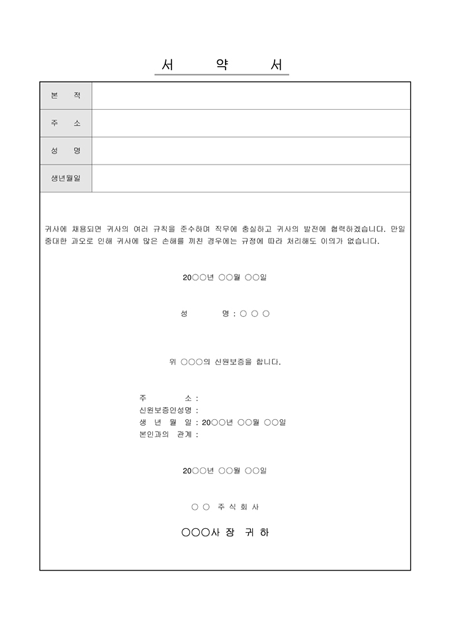 채용될시 당사의 규칙을 준수하겠다는 내용이며 신원보증인의 서명란이 있습니다.