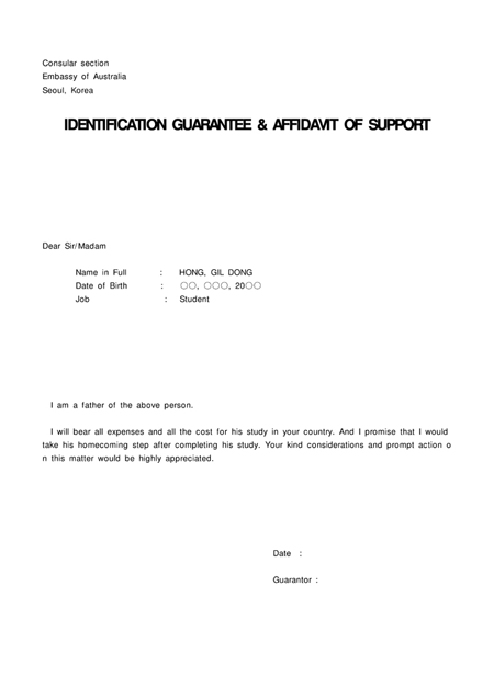 영문으로된 재정보증서 양식입니다.
