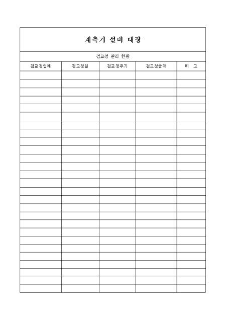 검교정업체,검교정일,검교정주기,검교정금액을 기록하는 양식입니다.