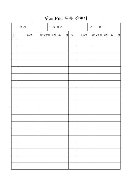 파일명,부번을 기록하는 원도파일등록신청서입니다.