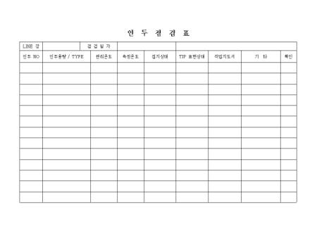 인두번호,인두용량,관리온도,측정온도,접지상태,TIP표면상태,작업지도서를 기록하는 인두점검표입니다.