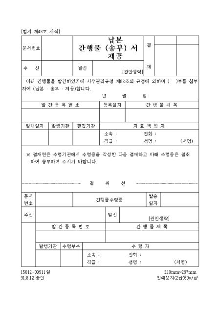 발간등록번호,등록일,간행물제목,발행일,발행기관,편집기관을 기록하는 양식입니다.
