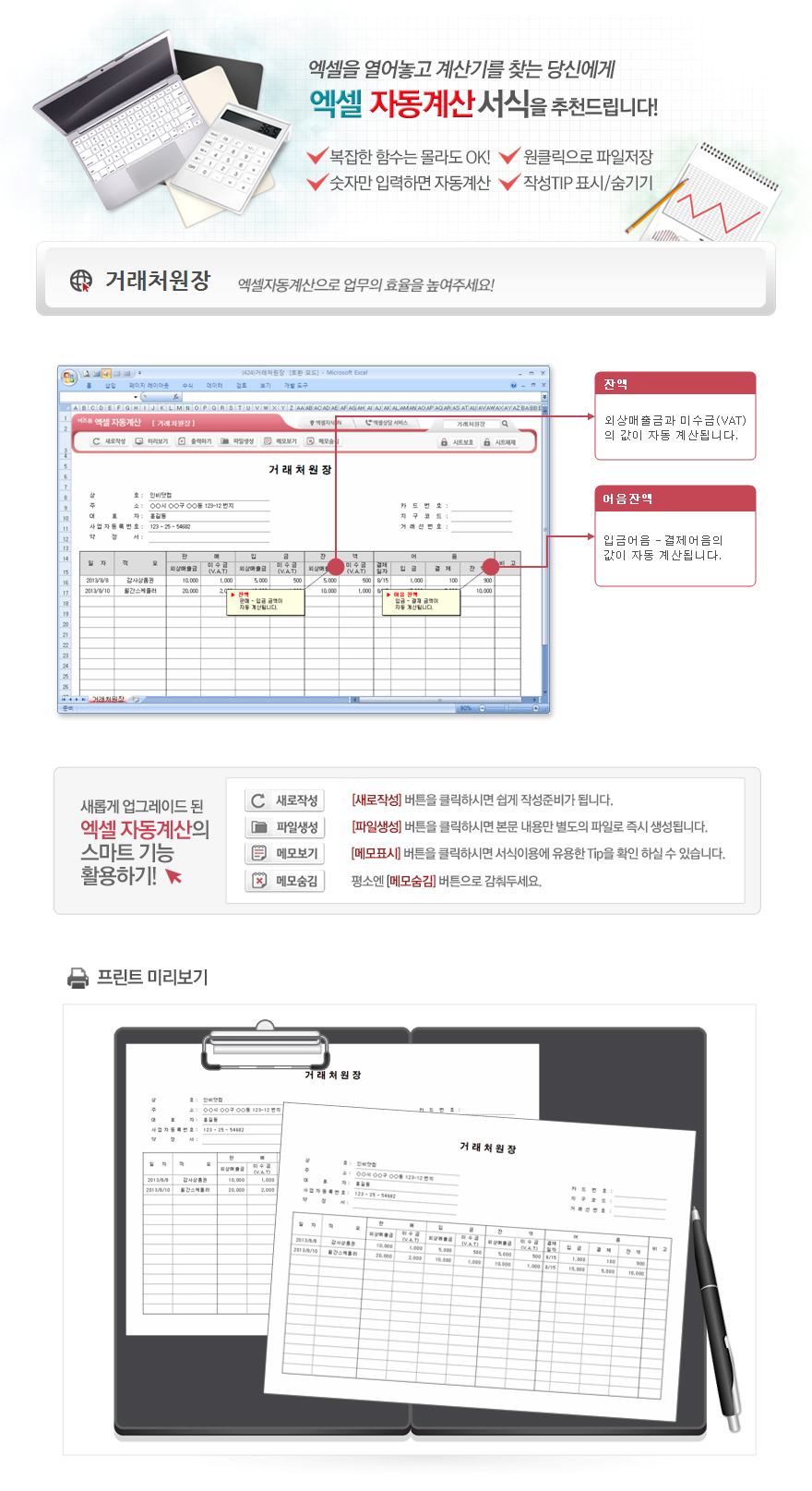 매입매출재고 통합관리 프로그램(일별현황, 월별현황, 거래처별현황, 상품별판매현황, 재고현황, 미지급미수금현황, 거래처원장, 견적서, 거래명세서, 세금계산서, 계산서)