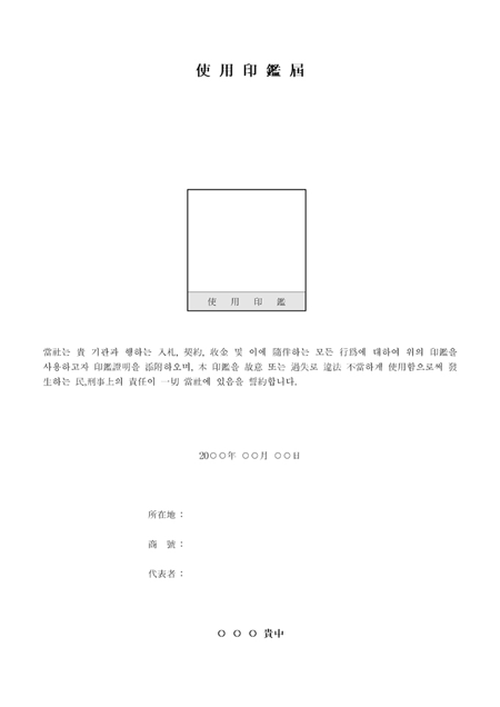 한문으로된 사용인감계입니다.