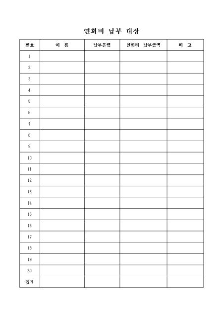 회사에서 이용하고 있는 서비스에 대한 연회비 납부를 기록하는 장부 양식입니다.