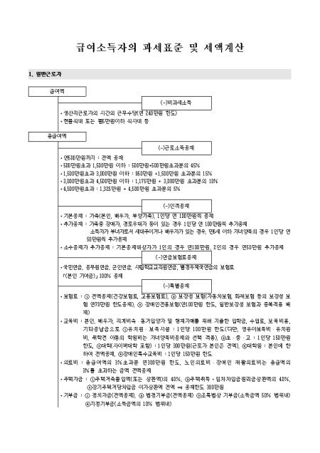 급여소득자의 과세표준 및 세액계산표 양식입니다. 일반근로자와 일용근로자로 나눠집니다.