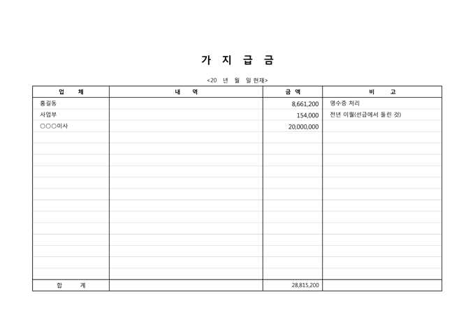 9,000원/월가지급금 내역을 업체별로 기재하도록 되어있습니다.