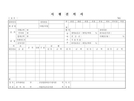 결의 내용,적요,실행 단가,금액을 기록하는 시행결의서입니다.