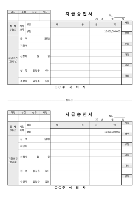 예산에 대한 지급을 승인하는 양식입니다.