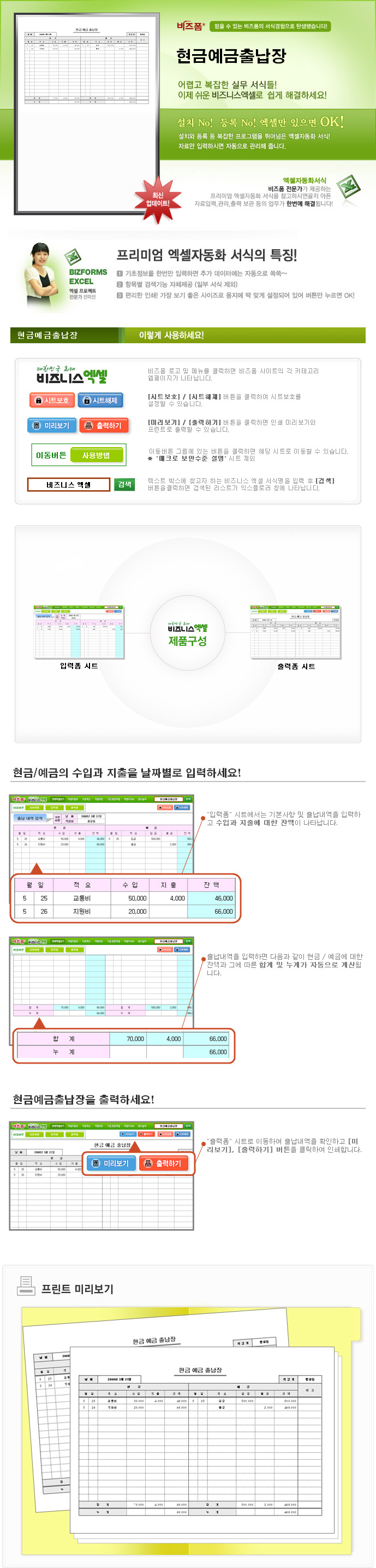 9,000원/월입력된 현금, 예금 내역이 자동으로 계산되어 총 합계를 나타내 주는 엑셀자동화서식입니다.