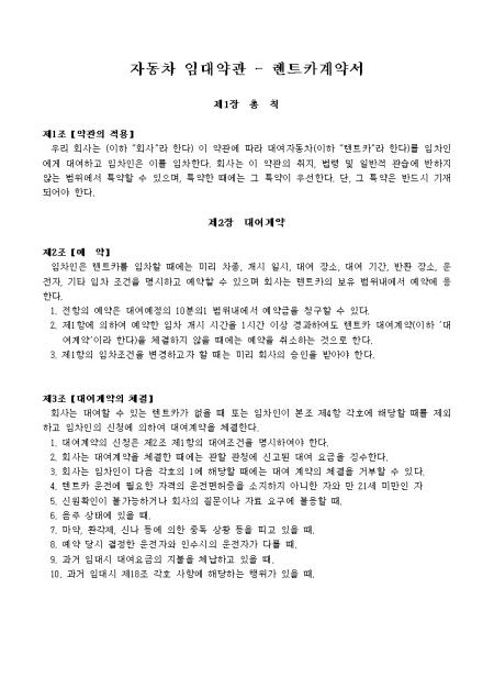 자동차 임대약관 렌트카계약서
