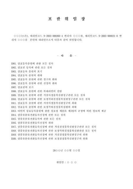 상표등록 출원에 관한 포괄위임장입니다.