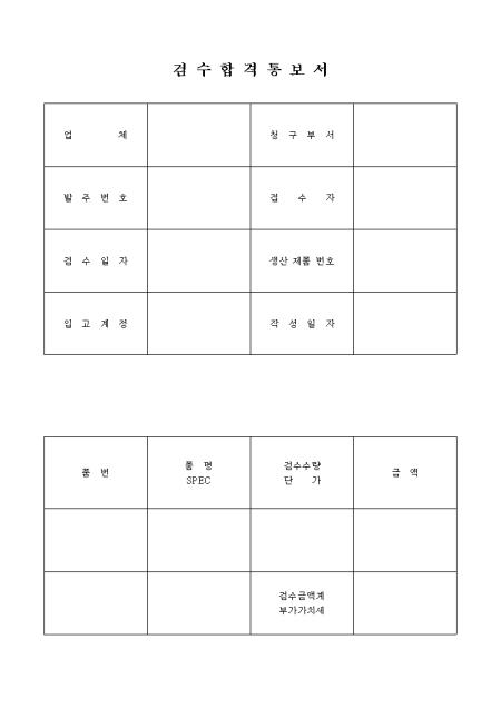 검수에 대한 합격을 통보할 때 사용하는 양식입니다.
