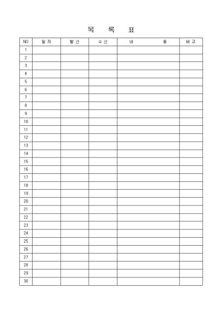 일자,발신,수신,내용을 기록하는 목록표입니다.