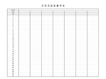 근로자의 일일 출역내역양식입니다.