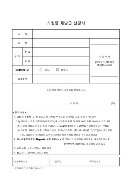 사원증의 재발급을 신청할 때 사용하는 양식입니다.