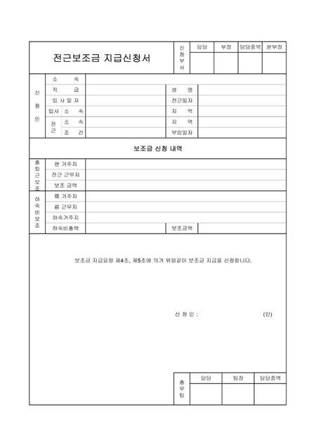 보조금 지급요령 제4조, 제5조에 의거 보조금 지급을 신청할 때 사용하는 양식입니다.