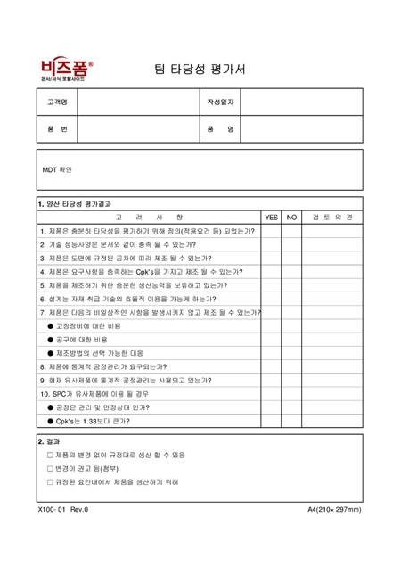항목별 팀 타당성을 평가할 때 사용하는 양식입니다.