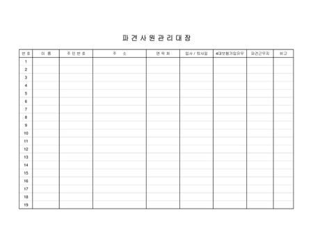 파견사원을 관리하기 위해 사용하는 양식입니다.