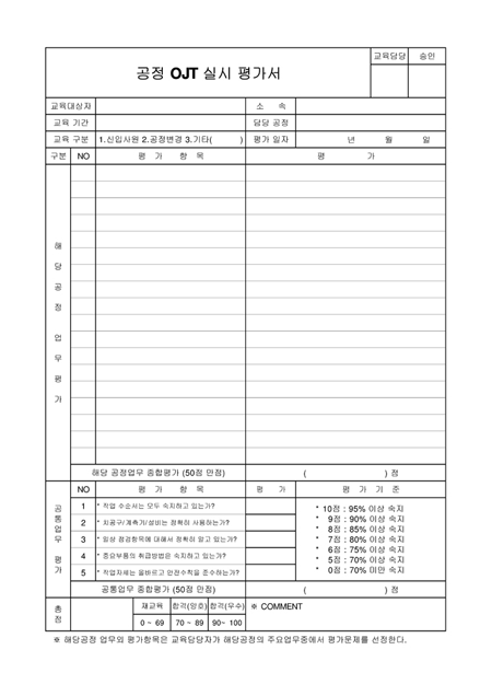 해당공정 업무평가항목에 따른 평가내용을 기록하는 양식입니다.