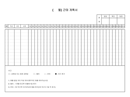 한달간의 근태상황을 기록할 수 있는 근태계획서입니다.
