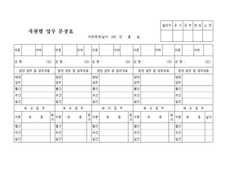 월간,주간,일간별로 담당업무 및 업무내용을 기록할 수 있는 양식입니다.