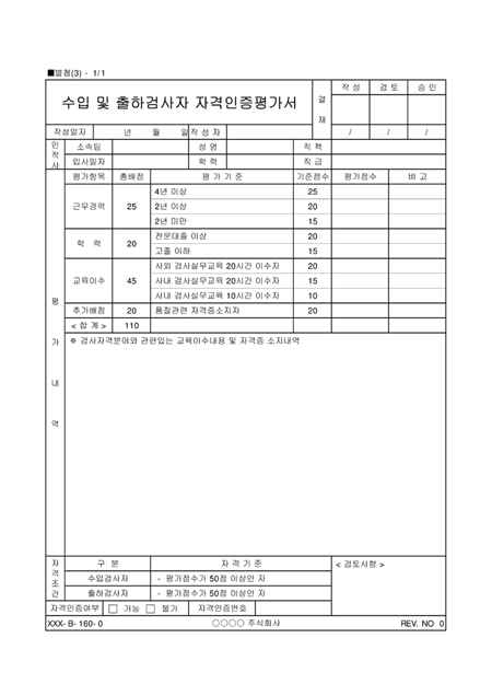 수출및출하검사자 자격인증평가서