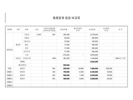 동종업계 임금 비교표