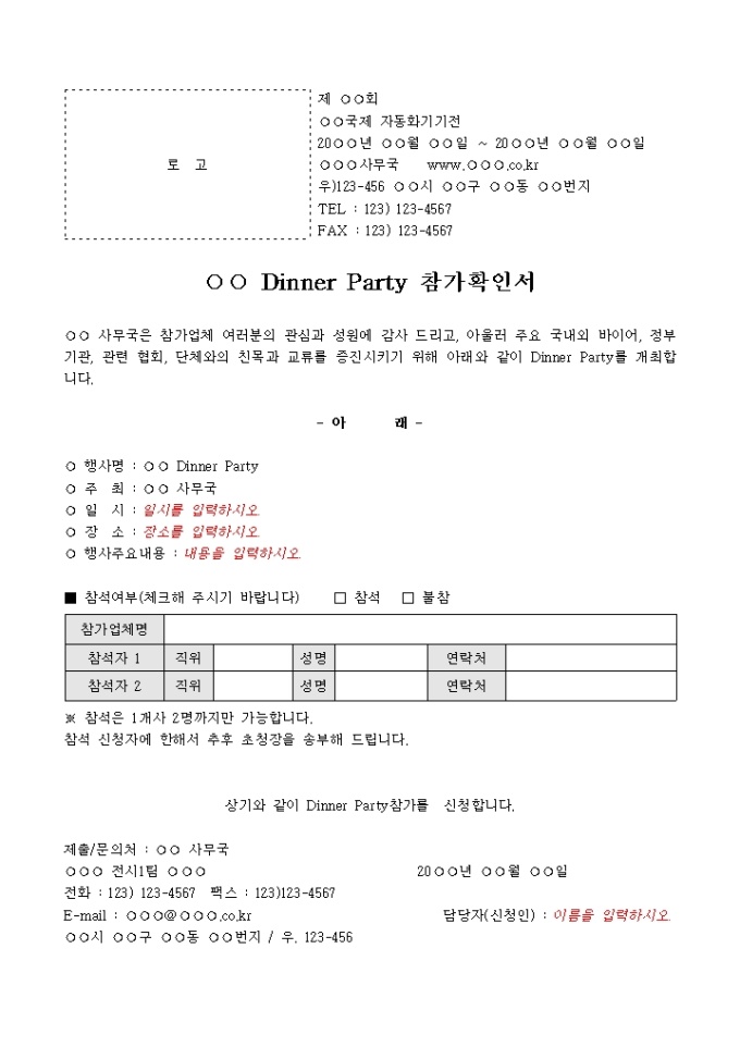 9,000원/월2003 Dinner Party 참가확인서