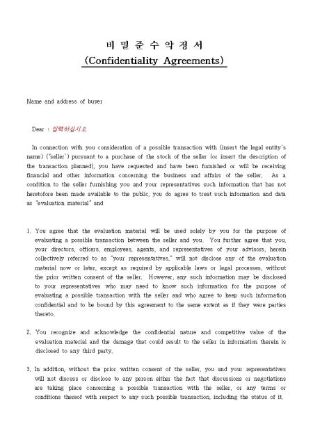 비밀준수약정서(confidentiality agreements)1
