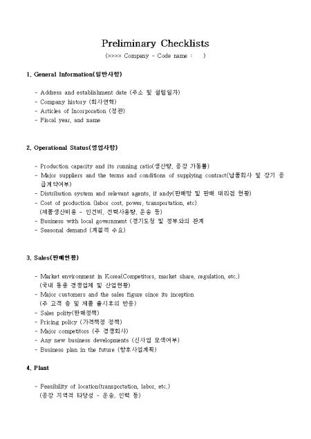 Preliminary Checklists