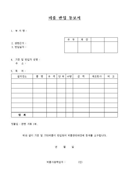 비품반입통보서외각종서식