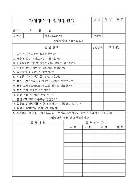 작업감독자 일일점검표