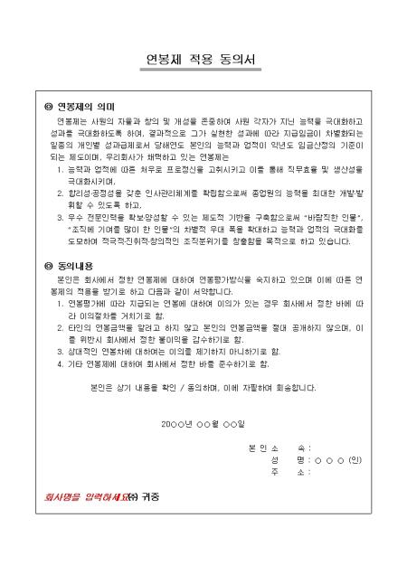 연봉 적용 동의서