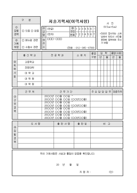 저술기획서(이력서)