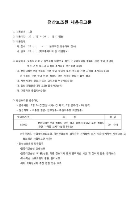 전산보조원 채용공고문
