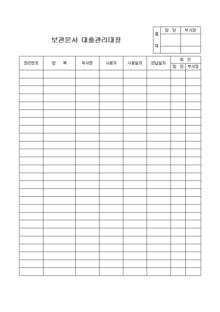 보관문서 대출관리대장