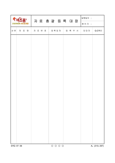 자료 총괄 등록 대장