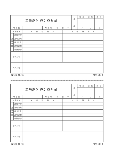 교육훈련연기요청서