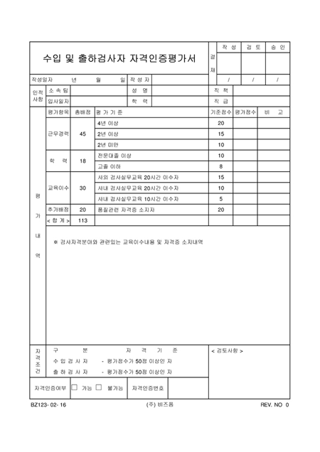 수입및출하검사자 자격인증평가서