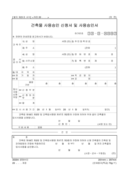 건축물임시사용승인신청서