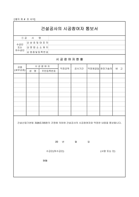 공사시공참여자통보서