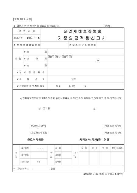 기준임금적용신고서(산재)