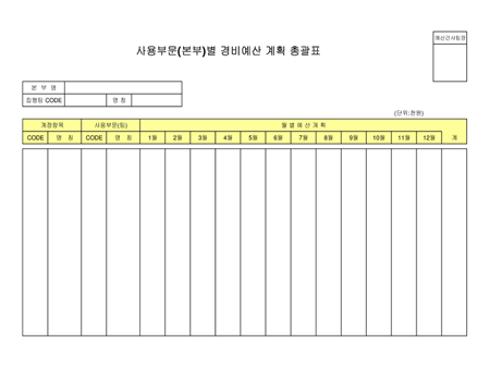 사용부분(본부)별 경비예산 계획 총괄표