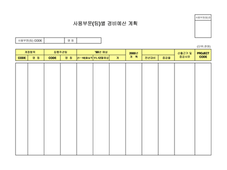 사용부분(팀)별 경비예산 계획