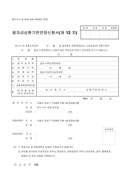 융자금상환기한연기신청서(일반)