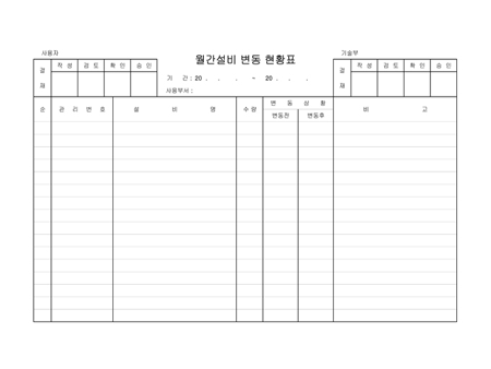 월간설비변동현황표